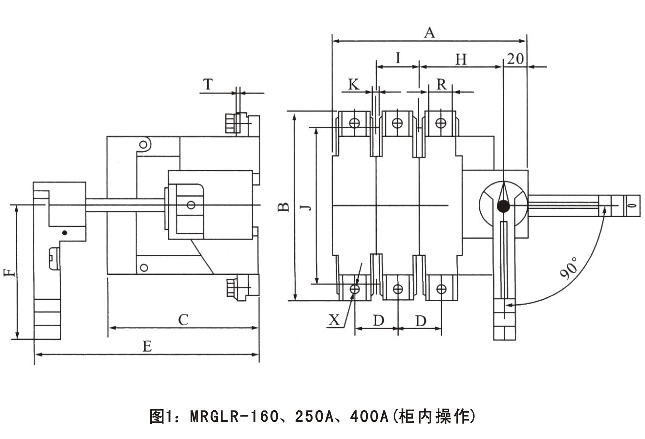 MRGLR-160、250A、400A的外形與安裝尺寸(尺寸見(jiàn)表)