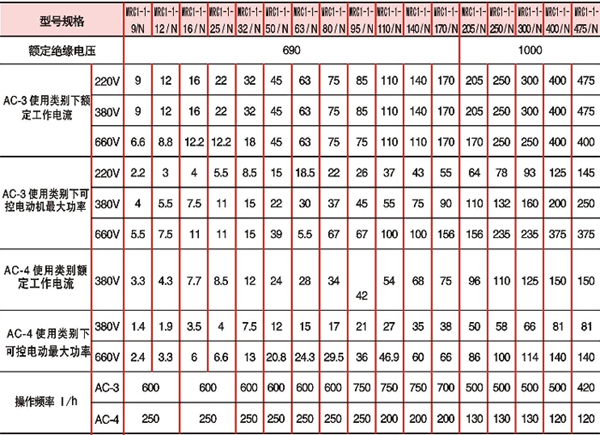 注:1.AC-3使用類別典型用途舉例:籠型感應(yīng)電動機的起動、運轉(zhuǎn)中分?jǐn)唷?br /> 2.AC-4使用類別典型用途舉例:籠型感應(yīng)電動機的起動、反接制動或反向運轉(zhuǎn)、點動。