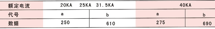 | 額定電壓 | KV | 20KA | 25KA | 31.5KA | 40KA | |