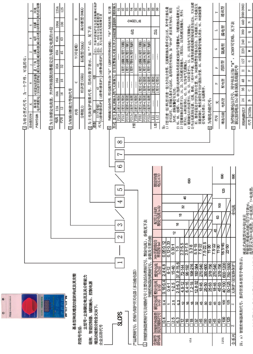例二:訂SL購CPS-N-45C/33E40/06ML表示出SLCPS可逆型產(chǎn)品、分?jǐn)嗄芰?5KA、主體脫扣器額定電流45A、三級帶三極保護(hù)、液晶式智能控制器額定電流40A、3常開2常閉+1短路1故障輔助觸頭、線圈控制電源電壓220V,帶漏電功能。