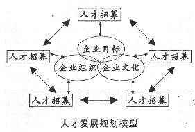 企業(yè)目標(biāo)、企業(yè)組織、企業(yè)文化是人才發(fā)展規(guī)劃的先決條件,這些內(nèi)容在企業(yè)發(fā)展規(guī)劃中需予以明確和規(guī)定。人才發(fā)展規(guī)劃本身由5個(gè)模塊組成,即:人才招募、績效評價(jià)、人才激勵、人才發(fā)展、人才退出。這5個(gè)模塊構(gòu)成了一個(gè)循環(huán),并與企業(yè)目標(biāo)、企業(yè)組織和企業(yè)文化之間發(fā)生相互作用。該模型的基本原理是Dr.W.Edwards Deming質(zhì)量管理PDCA循環(huán),P (Planning),做事要有計(jì)劃;D(Doing),按照計(jì)劃實(shí)施;C(Checking),檢查執(zhí)行情況;A(ACHEIg),經(jīng)驗(yàn)反饋與改進(jìn)。結(jié)合人力資源發(fā)展與管理工作的內(nèi)容,可以建立如圖所示的基本模型。